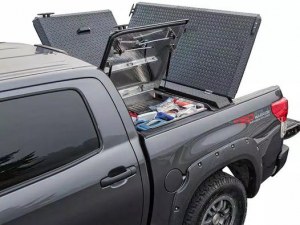 This roll up cover will give your truck a sportier look and it will also increase the height of the truck bed by 1.5 inches. While one may think that the extra space will cause nature to find its way into the cargo space, this isn’t true if you secure the Velcro system that comes with the design. With the Velcro system, you are guaranteed a weather tight seal t There are cross tubes that run the width of this cover to make sure that you don’t see any unsightly sags on the cover. The cover is made from premium quality leather grained fabric and it is weatherproofed. The tension controls allow you to straighten the cover to keep it tight. There are different pricing options based on the size of the truck bed. The 5.7’ option is $278.10.